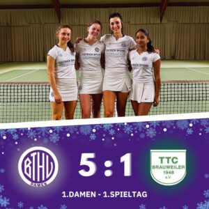 Es dürfte die spannendste Saison der 2. Bundesliga aller Zeiten werden – mit ständigen Überraschungen. Das gilt auch für die 1. Herren in Düsseldorf – ein wirklich sensationeller 12:8 Sieg. Und am Sonntag dann immerhin noch in letzter Sekunde der Ausgleich zum 6:6 gegen die am Samstag spielfreien Neusser. Die 1. Damen verloren in Düsseldorf und gegen RW Köln mit 1:7 bzw. 1:5. Die 2. Herren sind nach dem 7:4 gegen SW Köln 3 Tabellenführer. Keine Chance hatten die 2. Damen beim 1:7 gegen Leverkusen. Unglücklich die 2:3 Niederlage der 3. Damen gegen Spitzenreiter SW Köln 2. Bei den 4. Damen verzeichnet HUTHI kein Ergebnis, was einen Ausfall vermuten lässt.